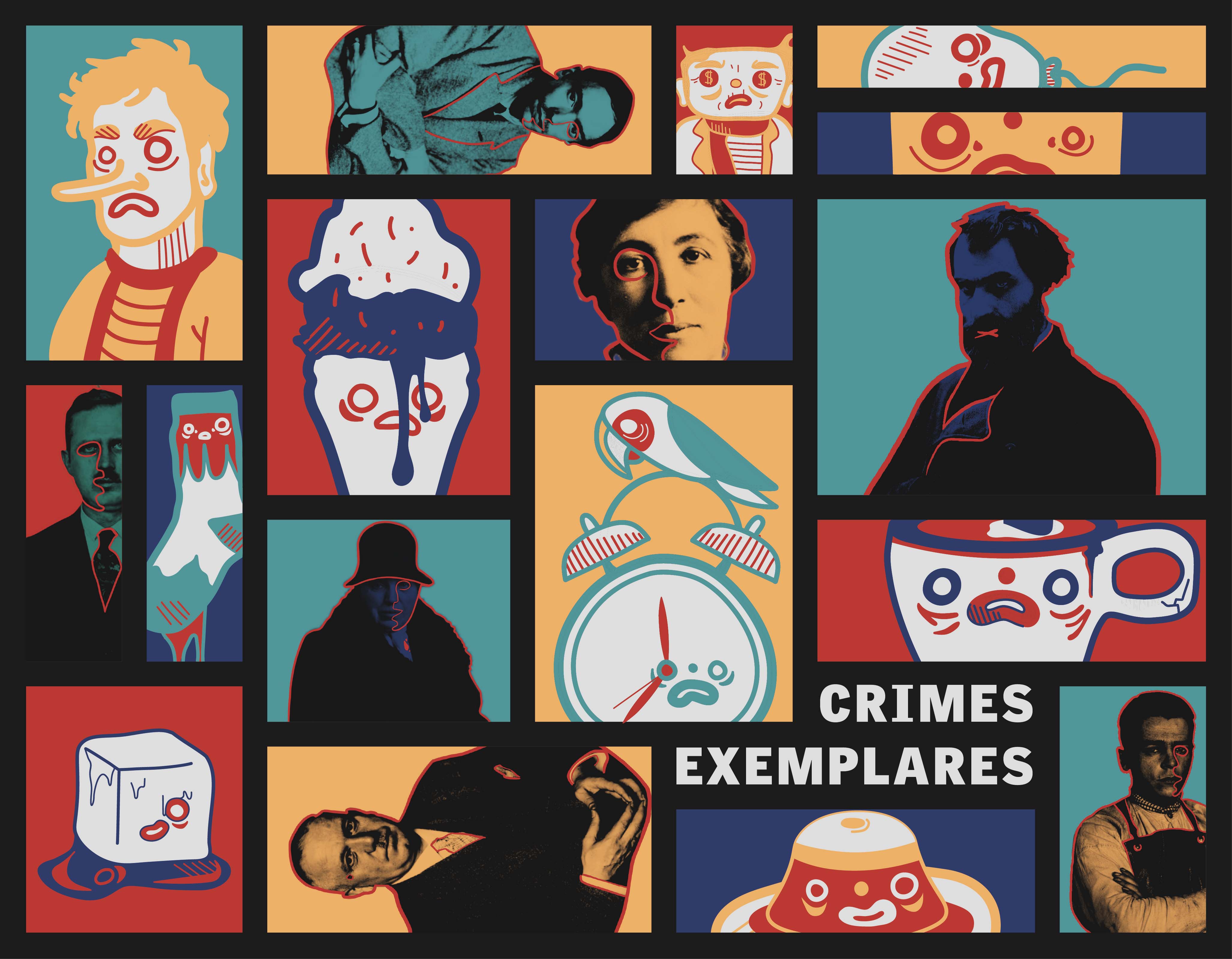 Crimes Exemplares is a literary work by Max Aub, comprised of concise narratives that chronicle a myriad of crimes occurring in diverse forms and situations. Primarily of a surreal nature, these criminal acts exhibit impulses of extreme violence, devoid of ethical or moral constraints, delivering a form of comedic discourse that accentuates the absurd. While the veracity of these tales remains elusive, they beckon the reader to contemplate the boundaries of mental sanity and the triggers that can propel individuals into the realm of irrationality. Both the editorial (boardgame) and multimedia (AR posters) components of this work explore contrasting dualities that establish a connection to the time periods in which these crimes transpired: the animal and the innocent, sobriety and madness, veracity and skepticism.