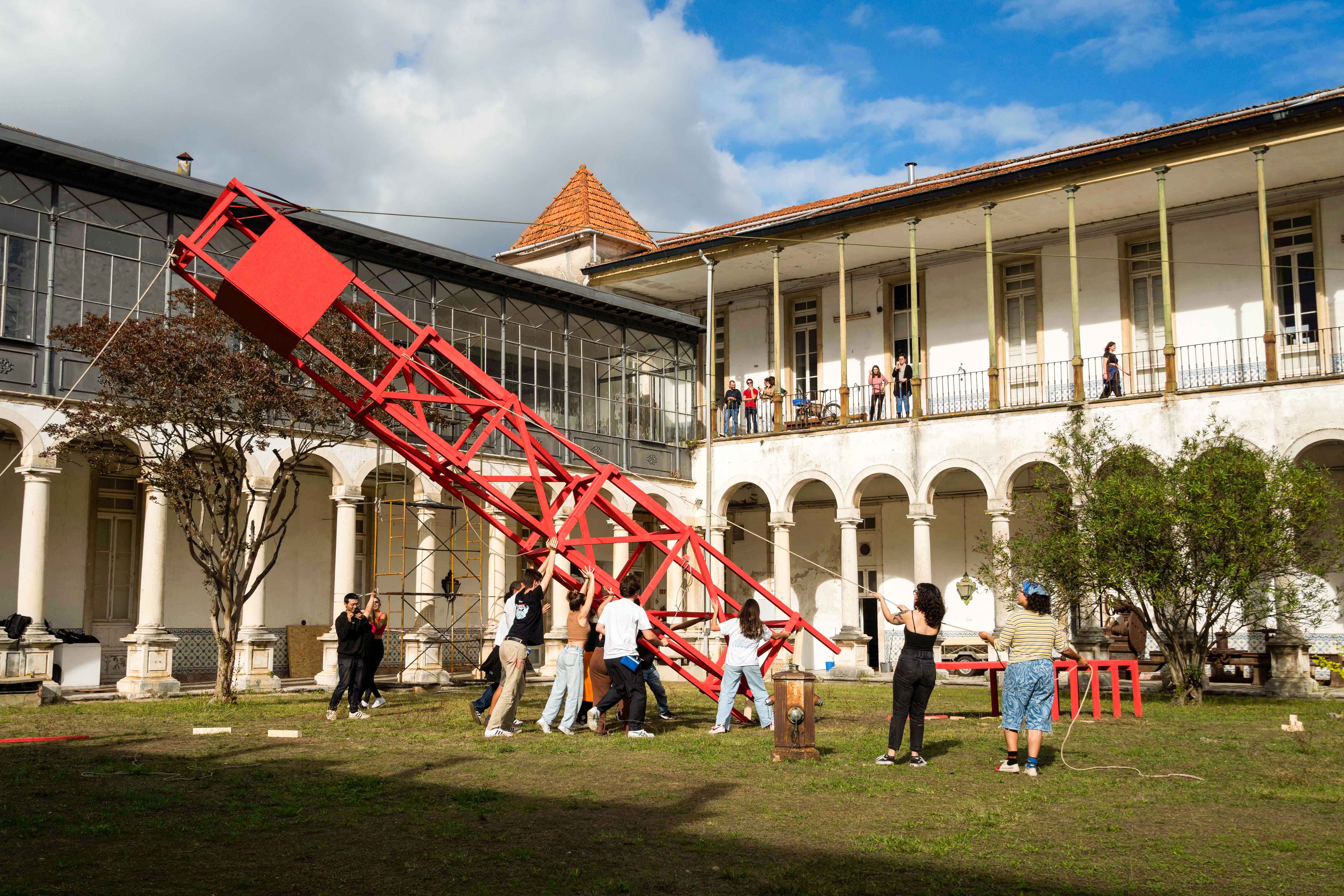 Paisagens Acessíveis is a project that transforms Coimbra’s public space through a series of ephemeral architectural installations designed and built by students. Rooted in the principles of accessibility and universal design, it proposes new ways of inhabiting the city by activating lesser-seen urban spaces. The workshop was organised by Há Baixa in collaboration with the Department of Architecture, University of Coimbra, and encouraged learning through making, civic engagement, and collective creation as tools to rethink the relationship between architecture, the body, and the territory. It resulted in four temporary structures located throughout Coimbra, at Largo do Romal, the University Press garden, Rua da Matemática, and the College of Arts courtyard.